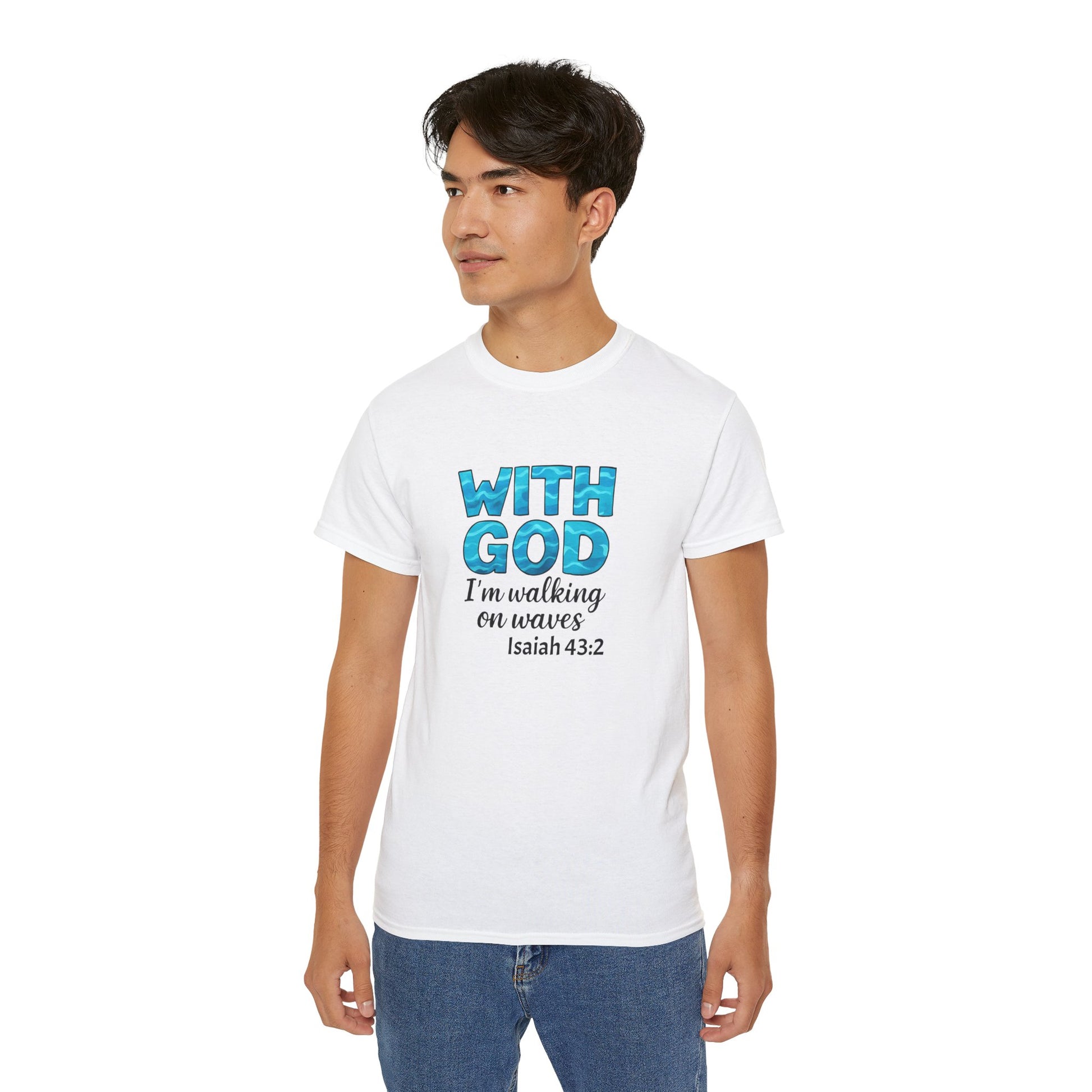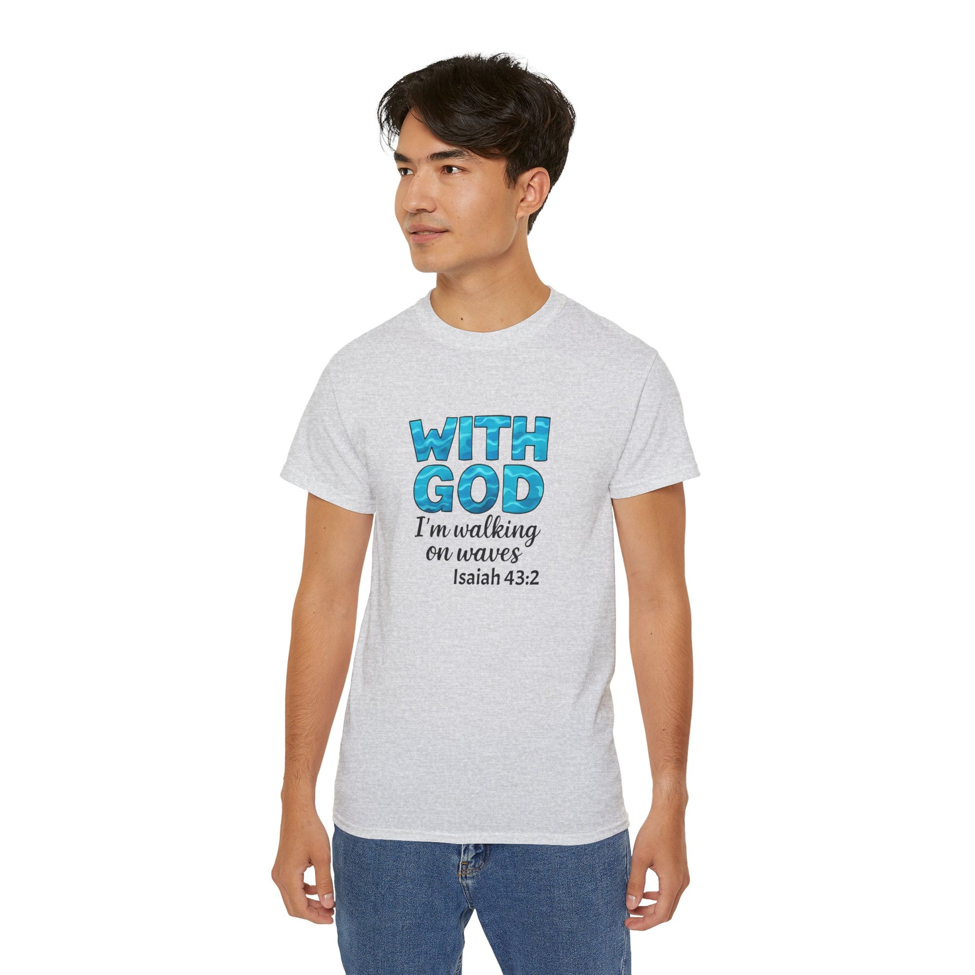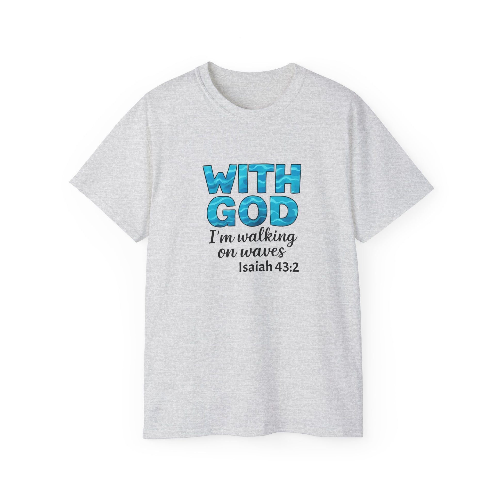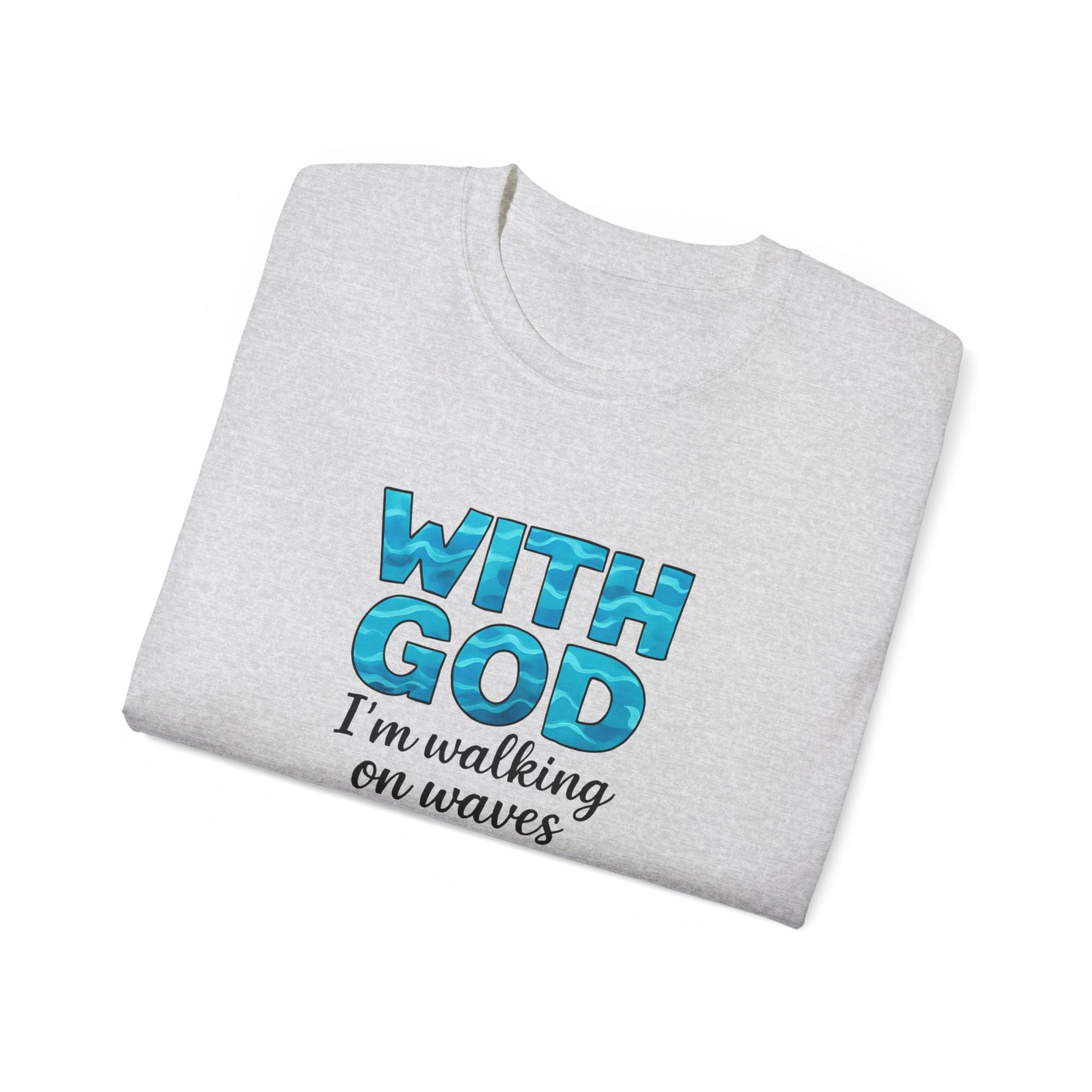 Faith-Inspired Cotton Tee: With God I'm Walking on Waves, Inspirational T-Shirt, Christian Apparel, Bible Verse Shirt, Gift for Believers