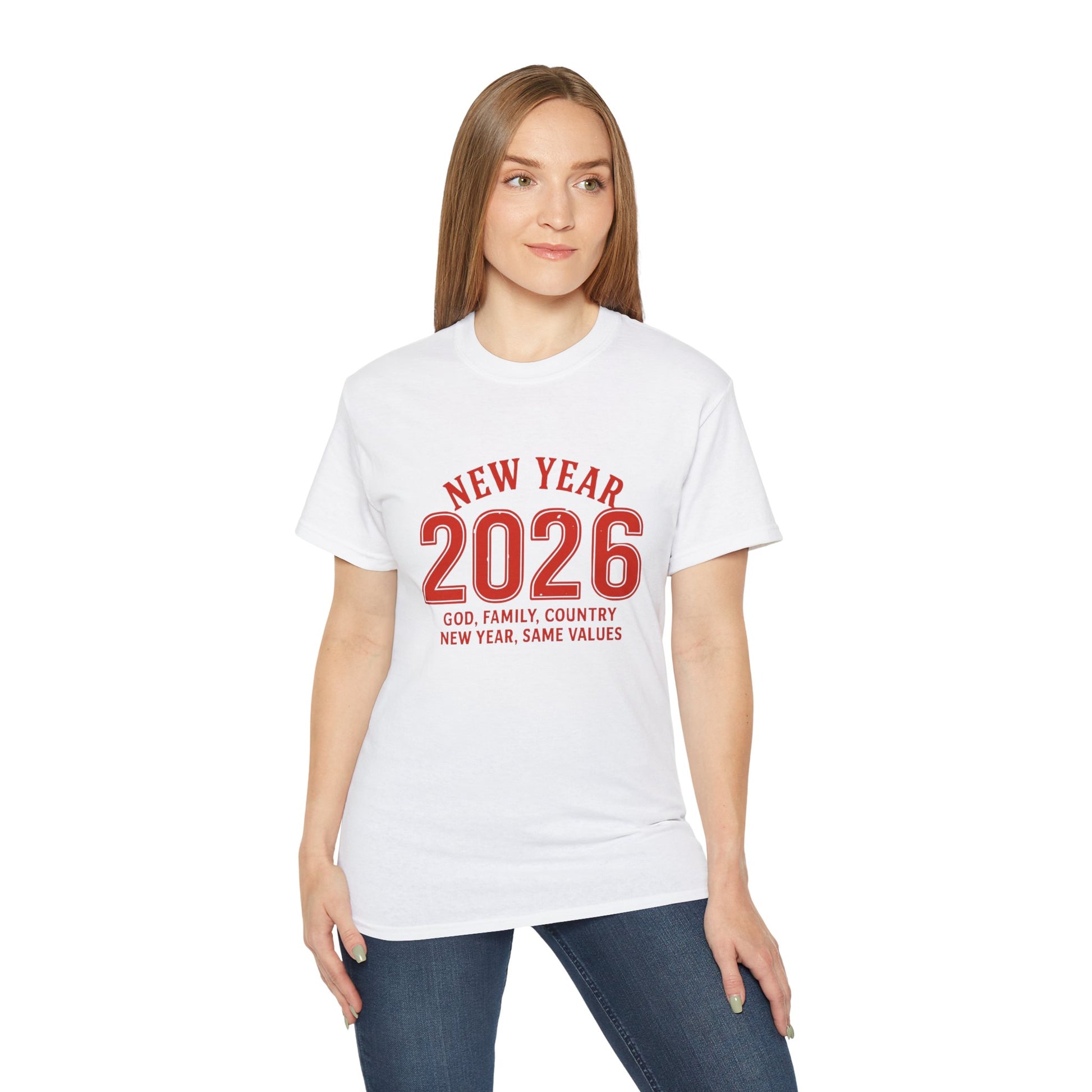 New Year 2026 T-Shirt — "God. Family. Country. New Year, Same Values."